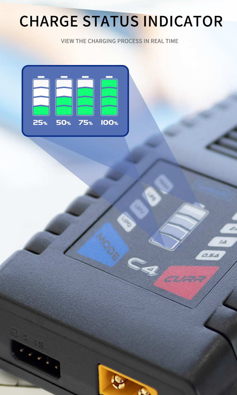 0.5A / 1.0A / 2.0A / 4.0A suitable for different battery capacities