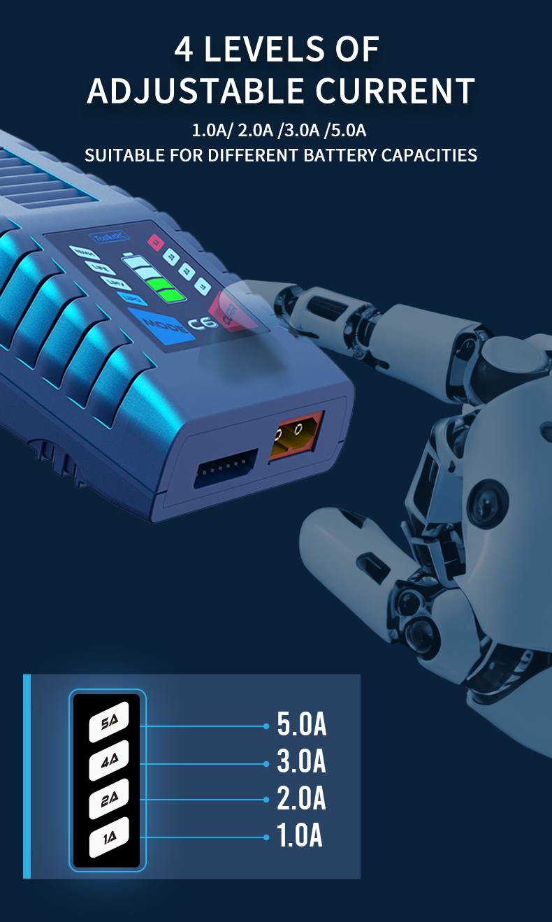 1.0A/ 2.0A /3.0A /5.0A Suitable for different battery capacities