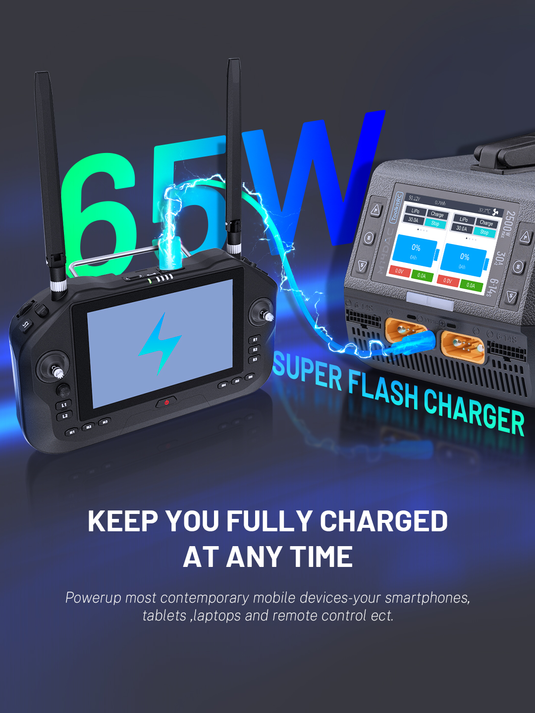 • 65W Super Flash Charger,keep you fully charged at any time.