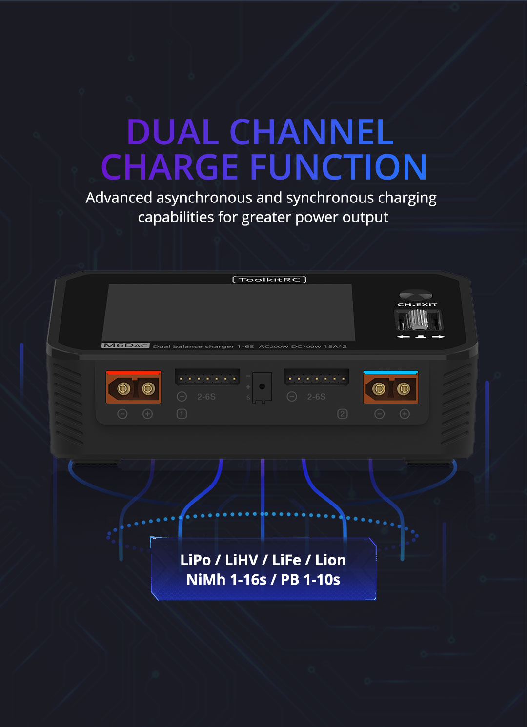 Charging Power | 0.1-15A@350W×2 (Asynchronous mode) 0.1-25A@700W (Synchronous mode) | |
